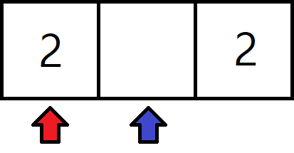 3. 목표위치와 숫자가 합쳐질 수 있으면 숫자를 합치고 목표위치와 현재위치를 뒤로 한 칸 옮긴다.
