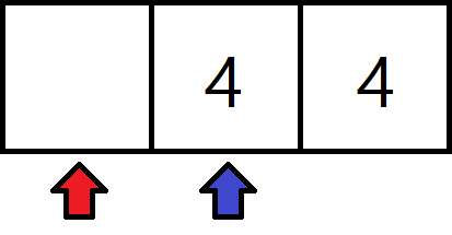 그리고 합쳐진 4는 더이상 합쳐질 수 없으므로 목표위치를 한 칸 뒤로 보낼 수 있고