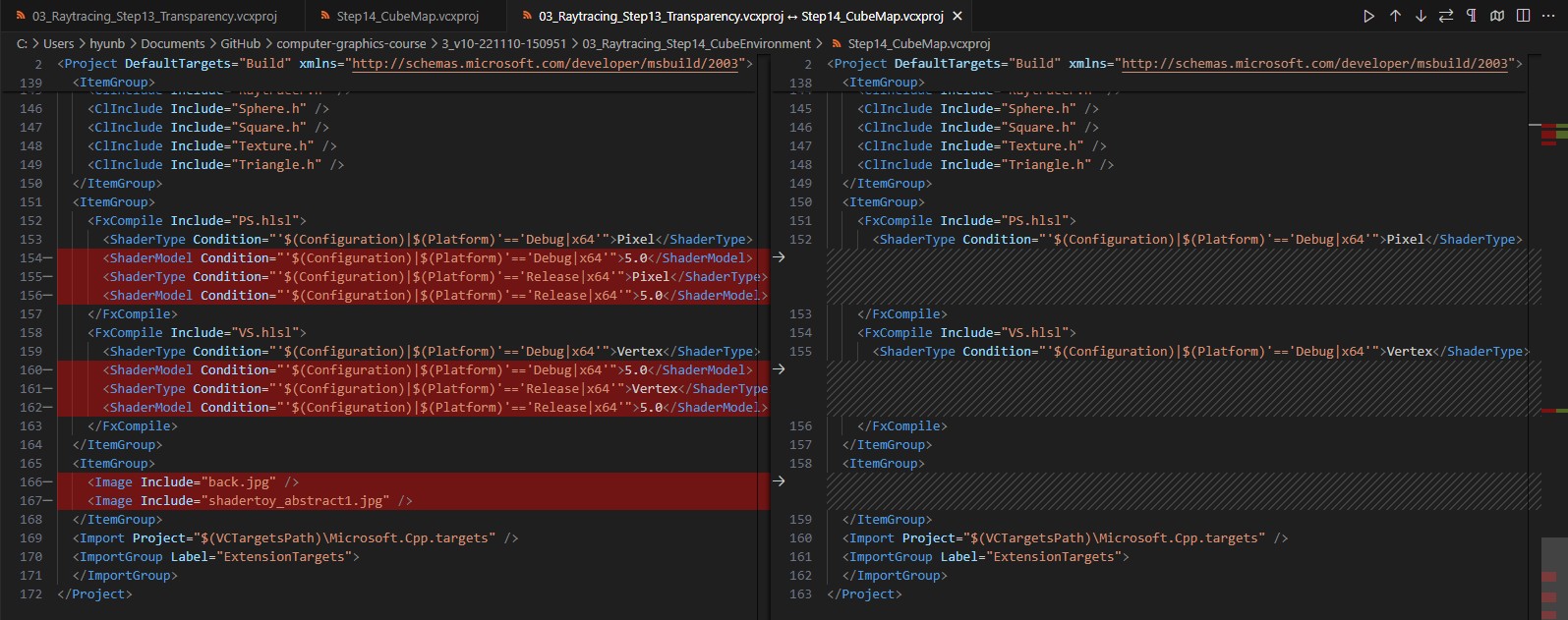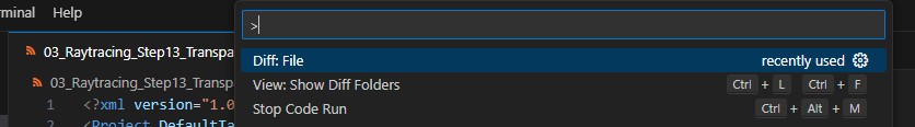 vcxproj 파일은 다른 폴더에 존재하기 때문에 비교할 두 파일 다 Visual Code에 불러온다.