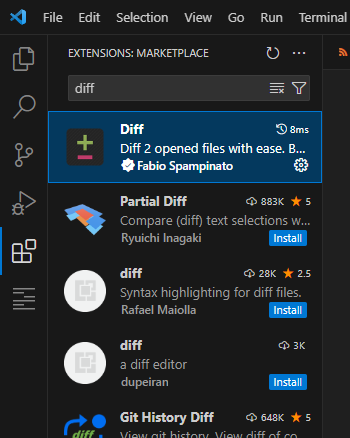 Visual Code - Extensions에서 Diff를 검색하여 설치하고 Reload 한다.